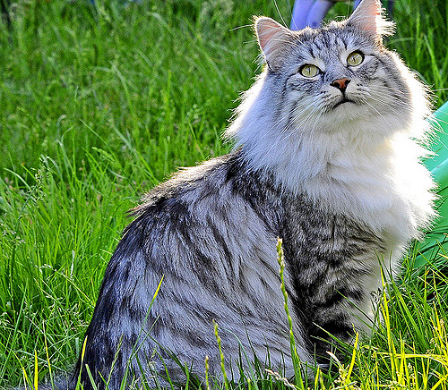 Feeding a Norwegian Forest Cat is not as simple as it was for the Vikings. Viking ships had an abundance of rats and other unwanted creatures for the Wegies to hunt and eat. Today, these felines should be fed a nutritious diet of dry cat food that is appropriately formulated for their activity level and age. Grooming a Wegie is imperative to their comfort. Their semi-long haired fur coat may become matted or dirty if it is not properly brushed and washed regularly. Bathing should be done on occasion and will be difficult as their coats are almost entirely waterproof. Wiping their fur with a moist towel or kitty wipes will help keep them clean and odorless.